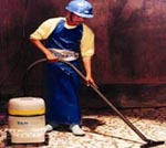 The very important stage is to clean the floor thoroughly by using high pressure jet. This removes all the dirt and layers of calcinations and other algae. The remaining dirt is removed by using a heavy duty industrial vacuum cleaner making the floor completely clean and dirt free.